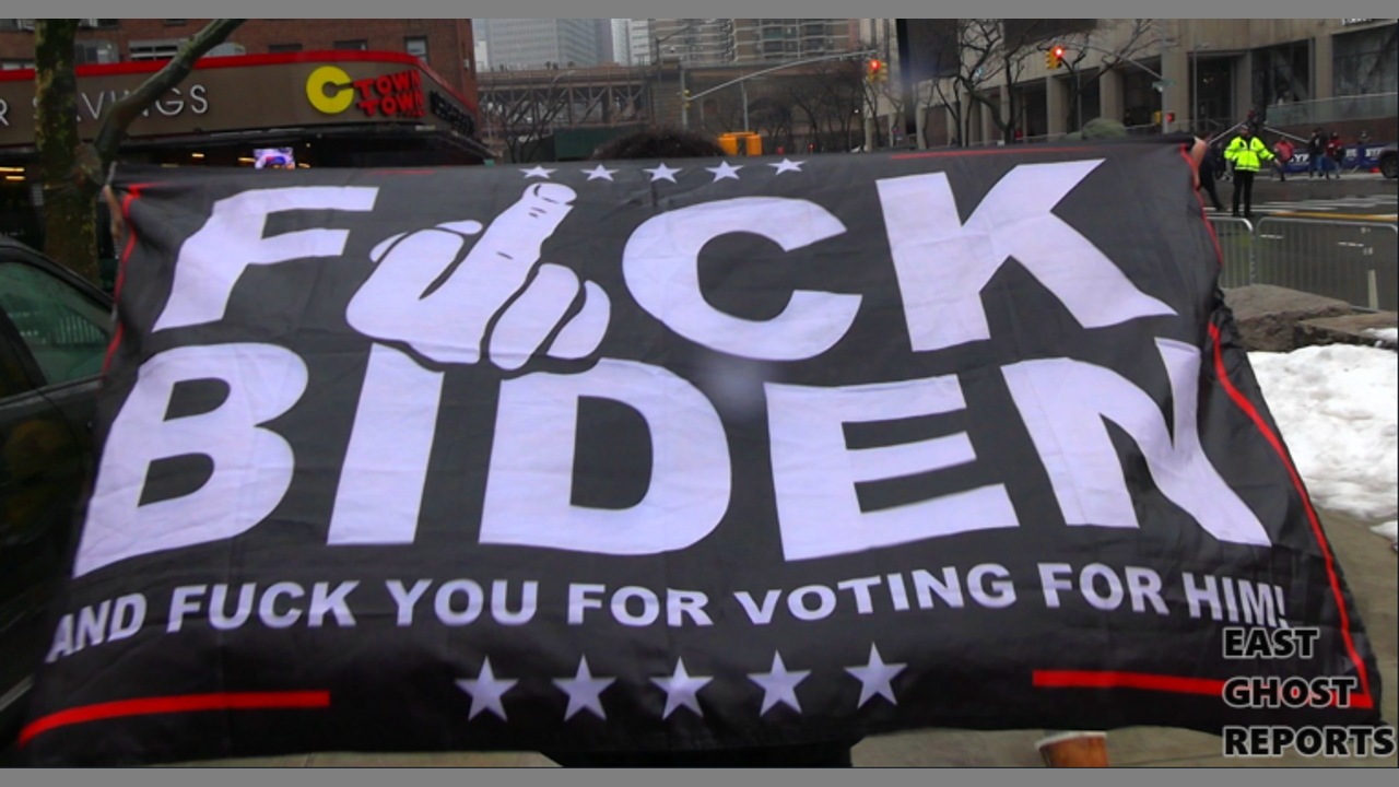 Protest outside Joe Biden's visit to NYPD headquarters 2/3/22