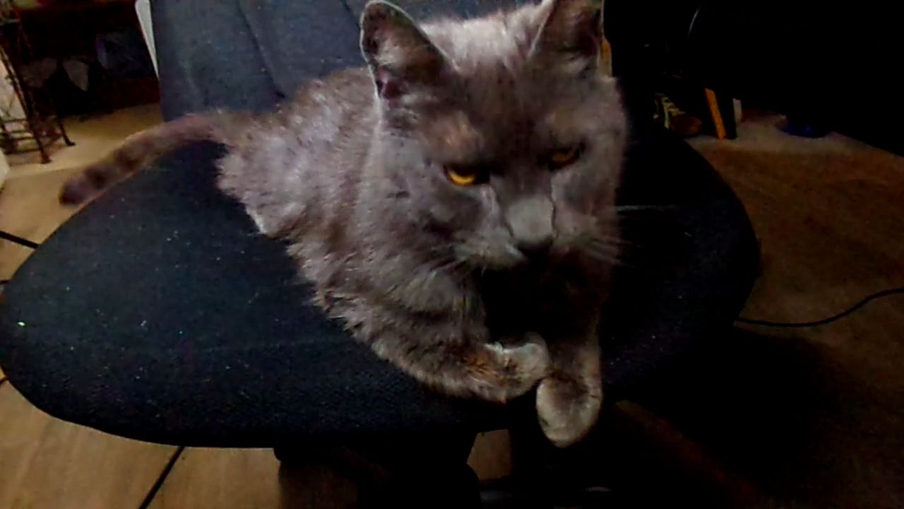Just like the good old days, taking my chair when ever he can......God Bless.
