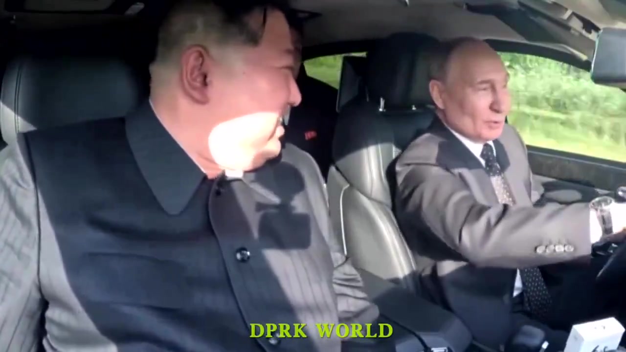 🇷🇺 🇰🇵 President Vladimir Putin Driving North Korea's Kim Jong Un in a brand new Aurus Russian Luxury Car.