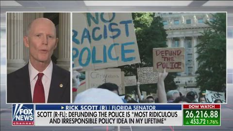 'The left has gone off the deep end,' says Senator Rick Scott explains his position on police reform and his plan to fund the police.
