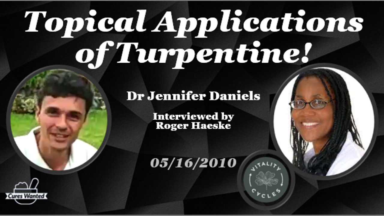 Roger Haeske, "the Eternal Teenajer" did an excellent interview of Dr Jennifer Daniels on "Topical Applications of Turpentine."