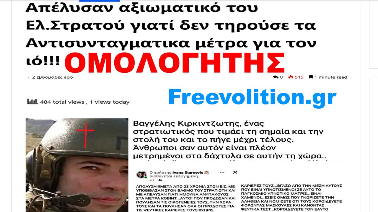 ΑΠΕΛΥΣΑΝ ΟΜΟΛΟΓΗΤΗ ΣΤΡΑΤΙΩΤΙΚΟ ΜΕ ΣΥΖΥΓΟ ΚΑΙ ΠΑΙΔΙΑ. ΕΡΧΟΝΤΑΙ ΚΑΡΤΑ ΕΡΓΑΣΙΑΣ, ΠΟΛΙΤΗ ΚΑΙ ΨΥΧΟΚΤΟΝΙΑΣ ΤΣΙΠΑΡΙΣΜΑ ΑΝΤΙΧΡΙΣΤΟΥ 666. ΖΗΤΩ ΤΟ ΒΟΛΕΜΑ ΚΑΙ ΟΧΙ Η ΣΩΤΗΡΙΑ ΤΗΣ ΑΘΑΝΑΤΗΣ ΨΥΧΗΣ ΜΑΣ;