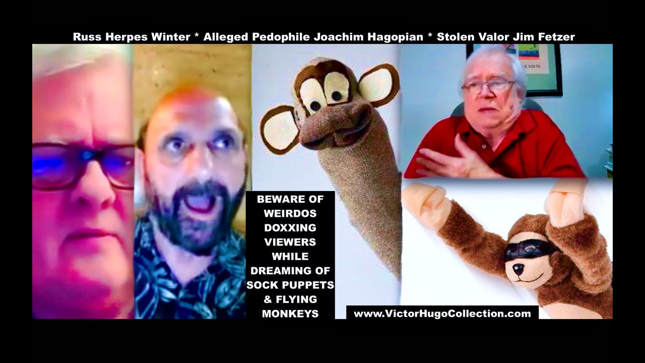 Herpes Russ Winter Alleged Pedophile Joachim Hagopian Stolen Valor Jim Fetzer Slander Victor Hugo while Dreaming Of Doxxing Sock Puppets & Flying Monkeys. Jim Fetzer Hides His Stolen Valor Failure To Provide DD214 By Slandering Proven Veteran Midshipman Officer Victor-Hugo Vaca II and so doing, James Fetzer exposes himself as a COINTELPRO Operative while, in desperation, Continuing to Beg His Audience To Join His Crusade To Censor Free Speech On Rumble, BitChute & GoyimTV. Discredited James Fetzer is described by Juxtaposition, in the following clip, as someone concealing material facts, truth and circumstances and in so doing becoming a Humbug which is a term that refers to dishonest talk, writing, or behavior intended to deceive people and can also be used as an exclamation to describe something as hypocritical nonsense or gibberish, uses his public platform to slander anyone exposing him as a fraud. https://rumble.com/v6sp38d-juxtaposition-validates-victor-hugo-susan-bradford-claim-that-jim-fetzer-is.html?e9s=src_v1_ucp