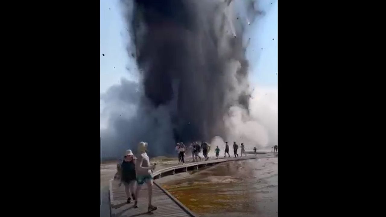 Eruption at Yellowstone, Montana in Biscuit Basin, earlier today, damaging boardwalk.