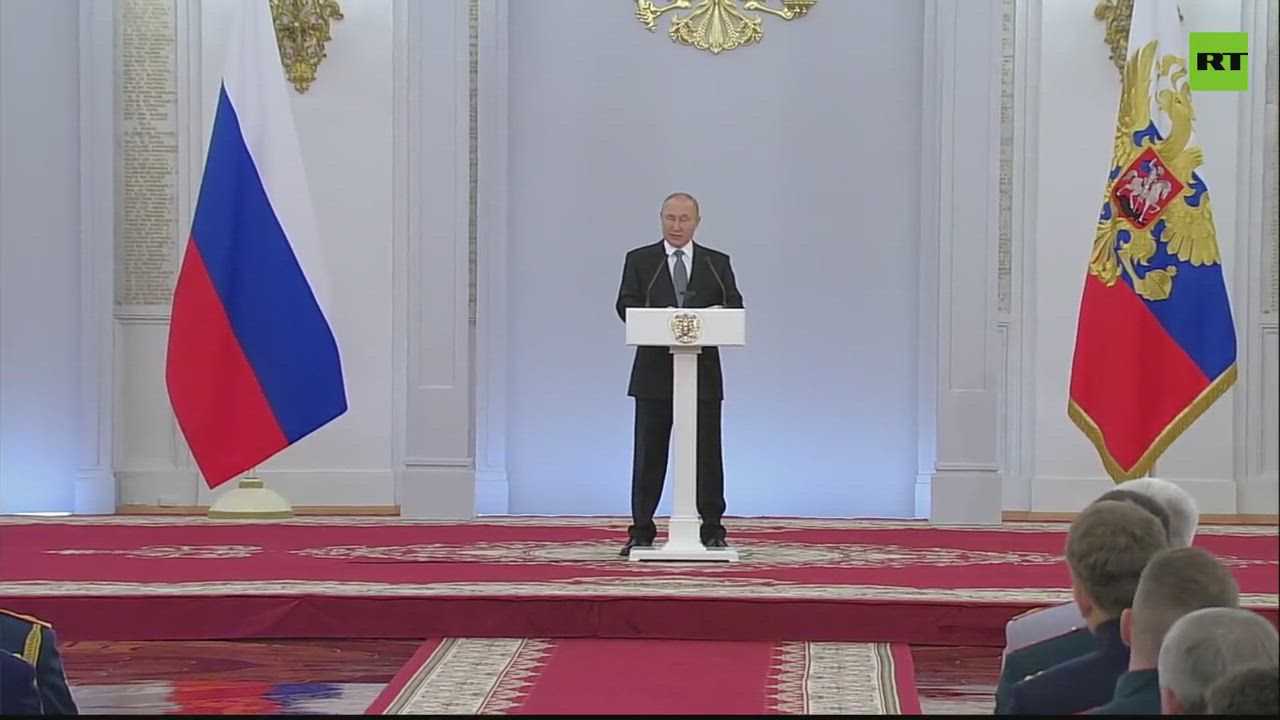 Putin reveals that the new intercontinental 'Sarmat' missile will be available for combat duty in Russian military by end of the year during his address to graduates from military academies