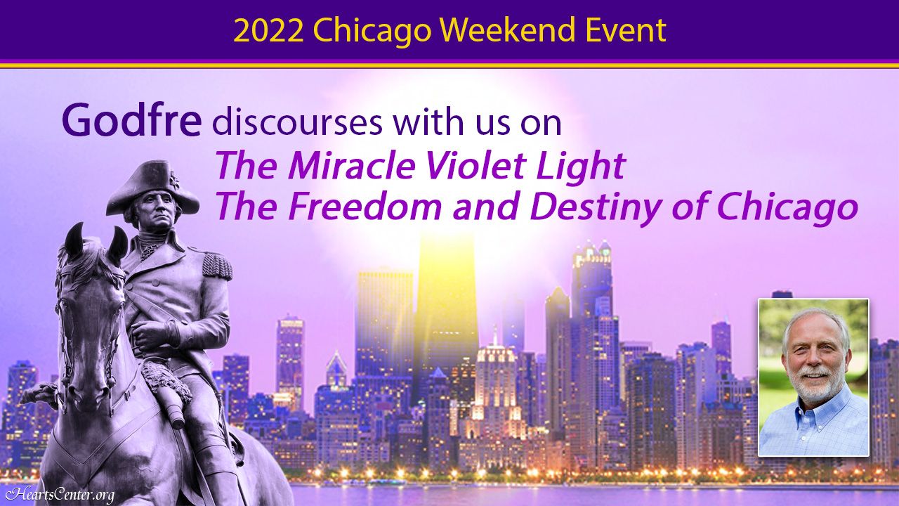 https://www.heartscenter.org - The Ascended Master Godfre discourses through David Christopher Lewis on the miracle violet Light. Godfre, who had embodied as a messenger for Saint Germain through the I AM Activity based in Chicago, exhorts us to see Chicago enveloped in the violet Light. The knowledge of this Light of mercy, forgiveness and freedom is an effervescent gift of the Holy Spirit bestowed by Saint Germain to humanity. It is ours to invoke to clean, bless, sanctify and glorify the Earth. He calls for 1,000 souls in the Chicago area to invoke the violet Light every day to set Chicago free from all that burdens it at present. This discourse was released on the first day of the Chicago event, "The Miracle Violet Light--the Freedom and Destiny of Chicago," April 30-May 1.