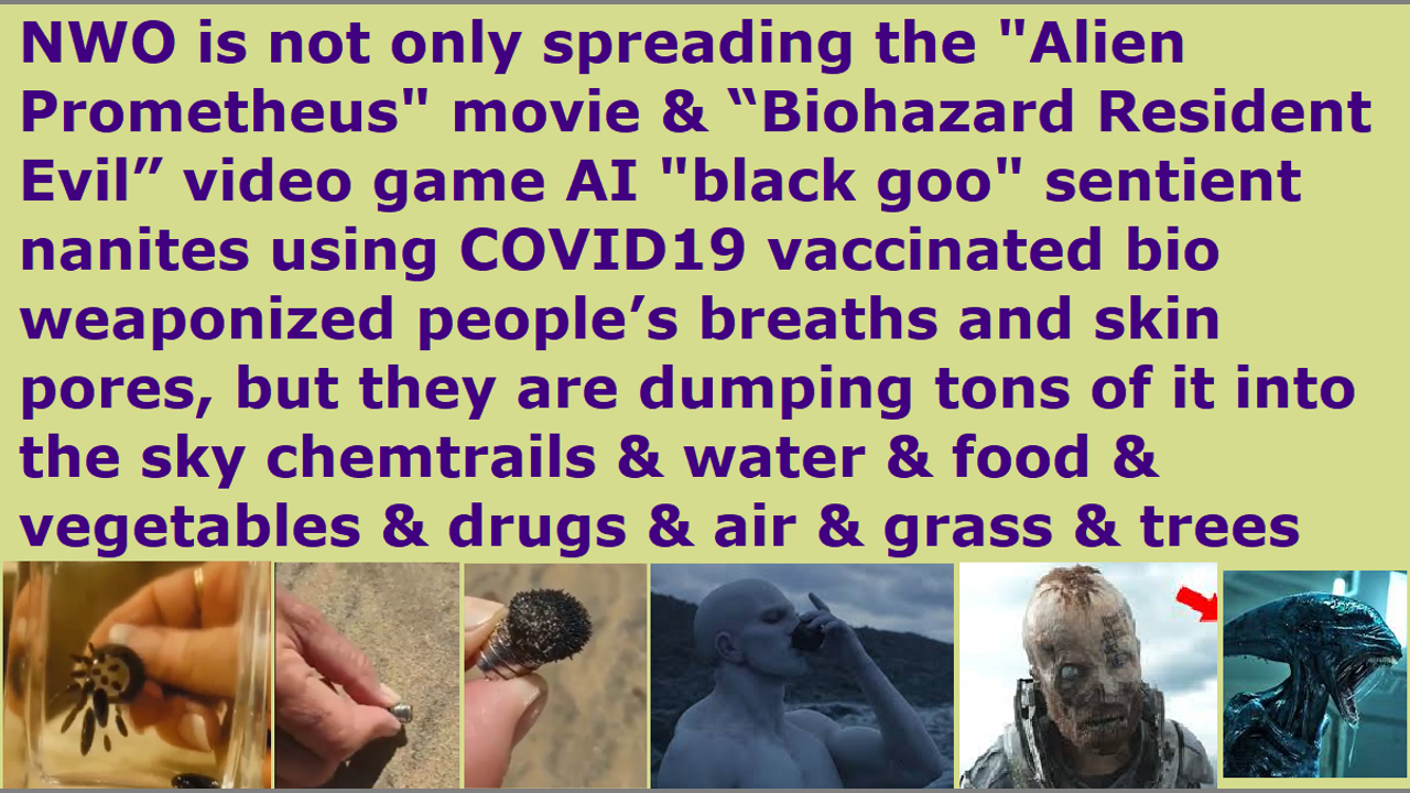 NWO nephilim elites dumping tons of "Alien Prometheus movie" xenomorph black goo in food, water, sky