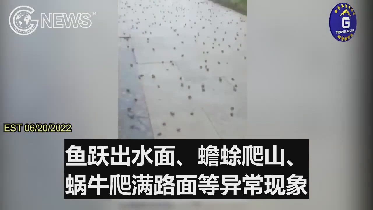 06/20/2022 Spotlight on China: Recently, abnormal phenomena such as fish leaping out of the water, toads climbing mountains, and snails crawling all over the road, have appeared in Chenzhou city, Hunan province.Netizens predict these are signs of catastrophic natural disasters, such as earthquakes or cataclysms