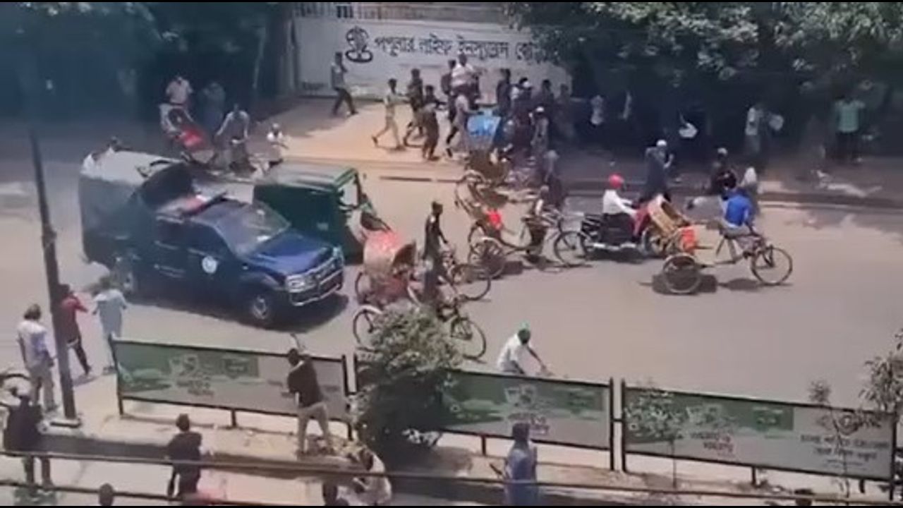 A Police Car Rams Protesters in Bangladesh capital Dhaka