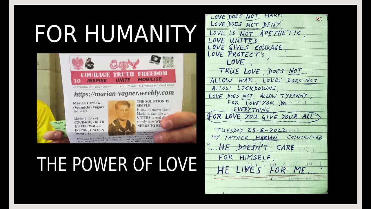 This is a divinely inspired message about the power of love. The way out of this encroaching tyranny is LOVE which is God given and God inspired. Andrew speaks about his father Marian Vagner, a WWII child hero and the story on his site: https://marian-vagner.weebly.com