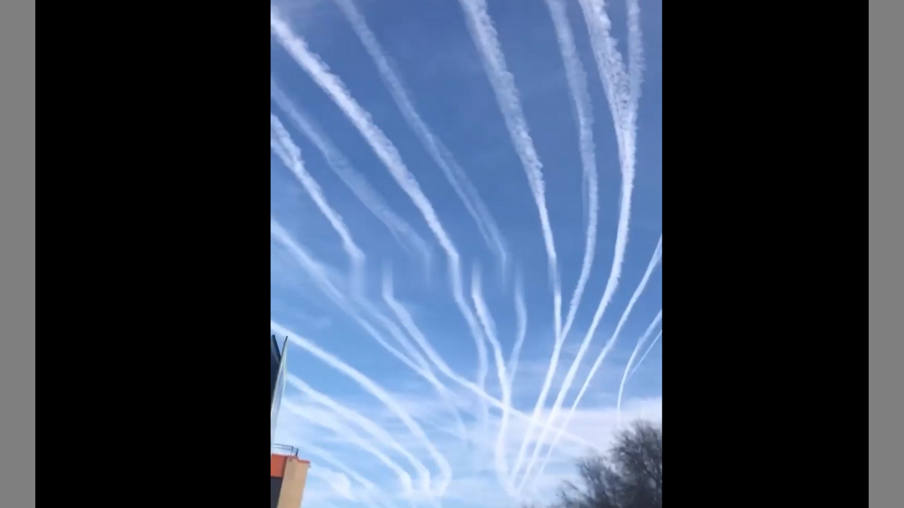 It is alleged that this is a video of traces from the launch of missiles into Ukraine, from Trails left in Sky over Astrakhan, Russia.