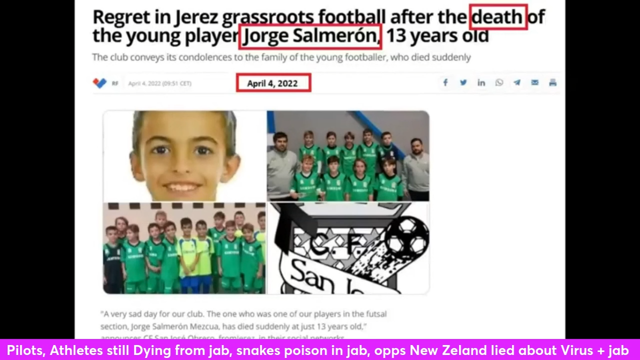 Pilots, Athletes still Dying from jab, snakes poison in jab, opps New Zeland lied about Virus + jab