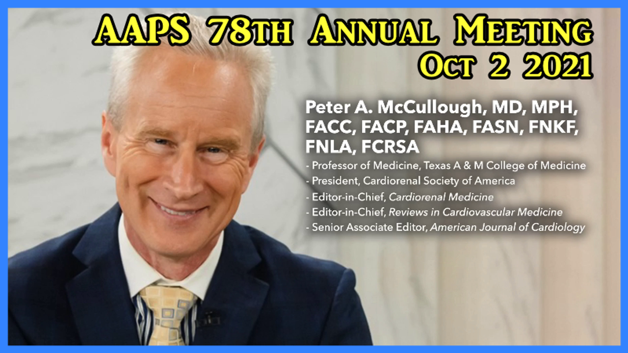 Peter McCullough MD, MPH speaks at the 78th Annual Meeting of AAPS on October 2, 2021. McCullough's passion comes out in this presentation... this is the first time I've seen a Doctor of such a calibre to break down in emotion over what he has seen in the denigration of the profession and the Hippocratic Oath.