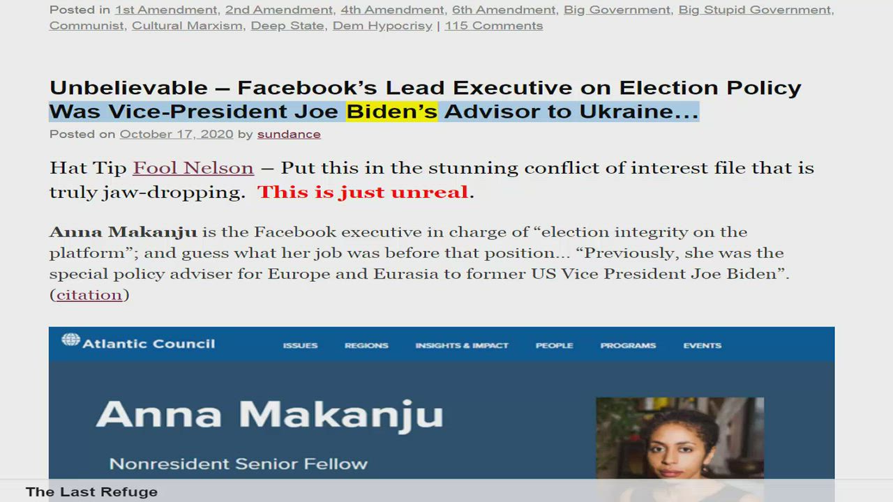 Unbelievable – Facebook’s Lead Executive on Election Policy Was Vice-President Joe Biden’s Advisor to Ukraine