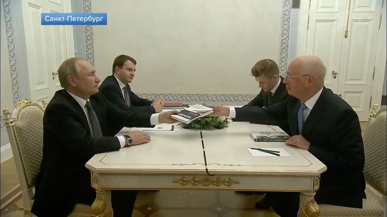 “Some people call me the father of the fourth industrial revolution. I wrote a book about this and I want to give it to you, " said Klaus Schwab during a meeting with Vladimir Putin in November 2019, presenting the head of state with a volume of the Fourth Industrial Revolution.