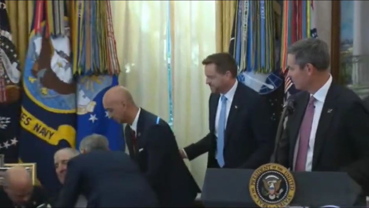 A quest standing near Donald Trump in the Oval Office collapsed as the president was holding a press event to announce discounts to two popular weight loss drugs. He collapsed while Eli Lilly CEO Dave Ricks spoke, prompting Ricks to pause his remarks.