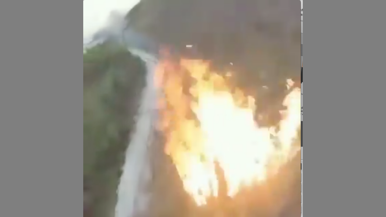 Interstate-5, Oregon : a dozen arson fires set along highway within throwing distance of road; fires are at almost even interval (https://www.youtube.com/watch?v=dIHZpYD4CfQ )