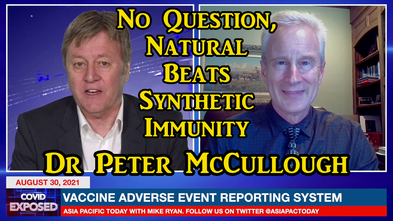 Mike Ryan of Asia Pacific Today talks with Dr Peter McCullough on a variety of subjects from VAERS, to Myocarditis in younger patients as an adverse event and provides some good data on immunity