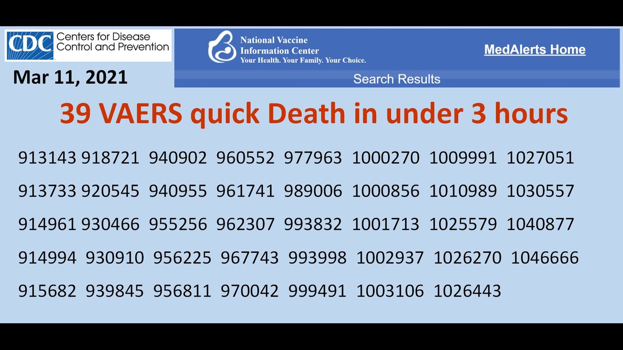 VAERS 39 Deaths in under 3 hours!