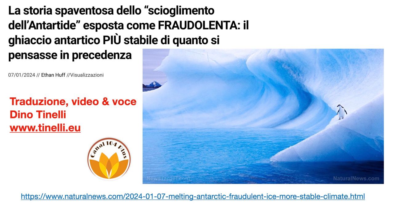 Link articolo https://www.naturalnews.com/2024-01-07-melting-antarctic-fraudulent-ice-more-stable-climate.html