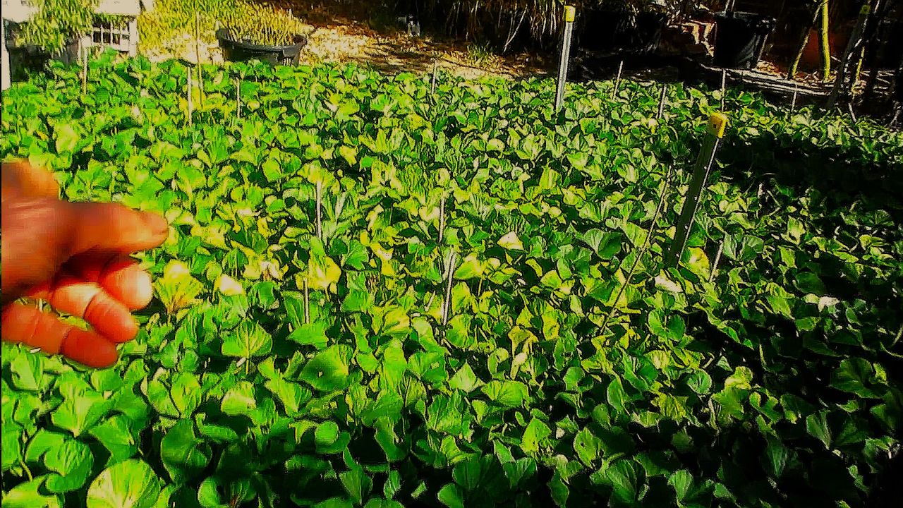 My first ever crop of sweet potatoes is teaching me about how they sprout, spread, cope with and without water, sunshine, and heat stress.
