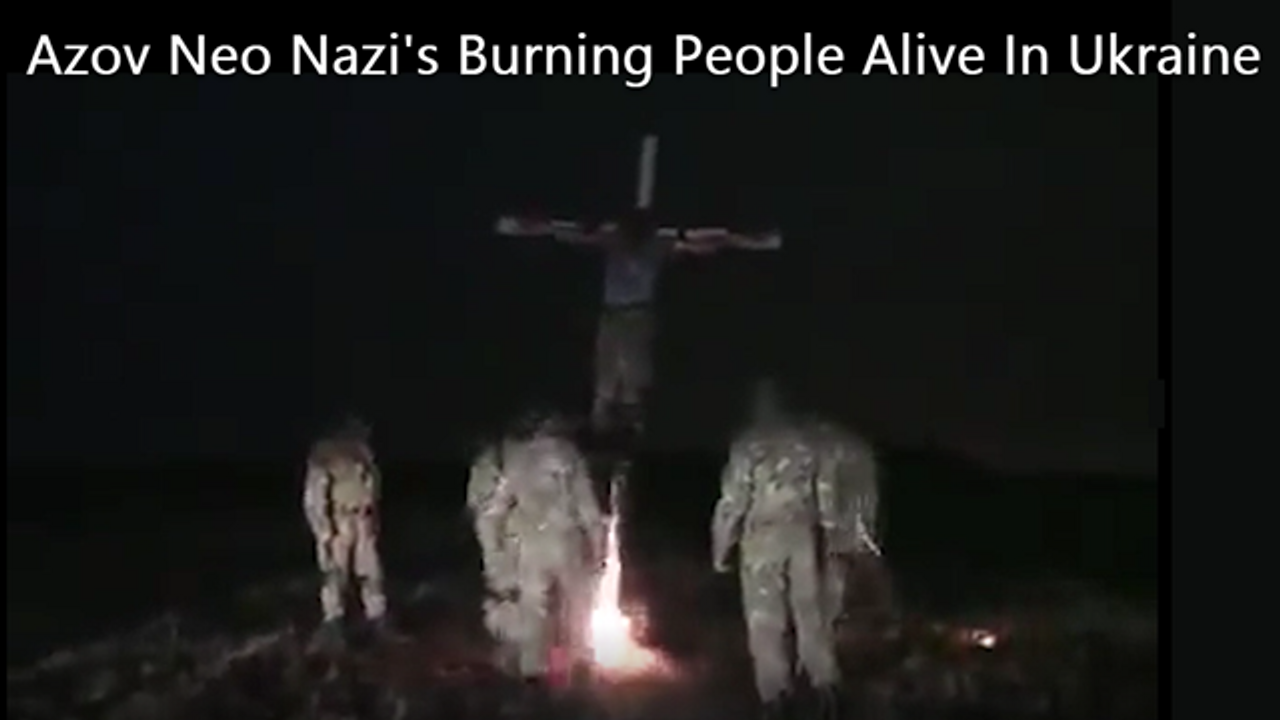 Azov Neo Nazi's Burning People Alive In Ukraine... They Burn Man Alive On Cross... Video Cuts Before It Gets To Gruesome