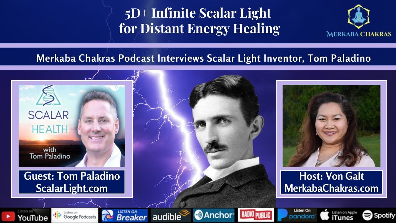 Welcome to another podcast episode of Merkaba Chakras. I’m your host, Von Galt. Today, we discuss the use of Scalar Light or what Nikola Tesla called, “radiant energy from the sun” as a form of distance energy healing. Nikola Tesla was the 1stknown inventor of Scalar Light with the use of the Colorado Springs Tower and the Wardenclyffe Tower, which beamed out free energy. Unfortunately, the banking crisis at the time ceased further funding to complete the projects. I love how there are ever-growing ways to tap into the unconditionally loving Christ Consciousness of the abundant universe. We’re going to learn more about Scalar Light with the inventor, Tom Palatino. Tom, welcome to Merkaba Chakras!
