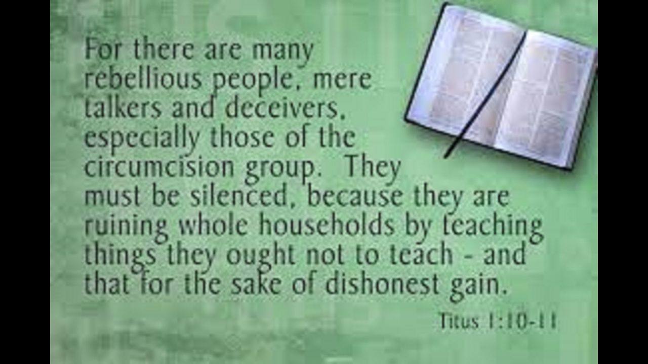 Whose mouths must be stopped, who subvert whole houses, teaching things which they ought not, for filthy lucre's sake. Titus 1:10-11