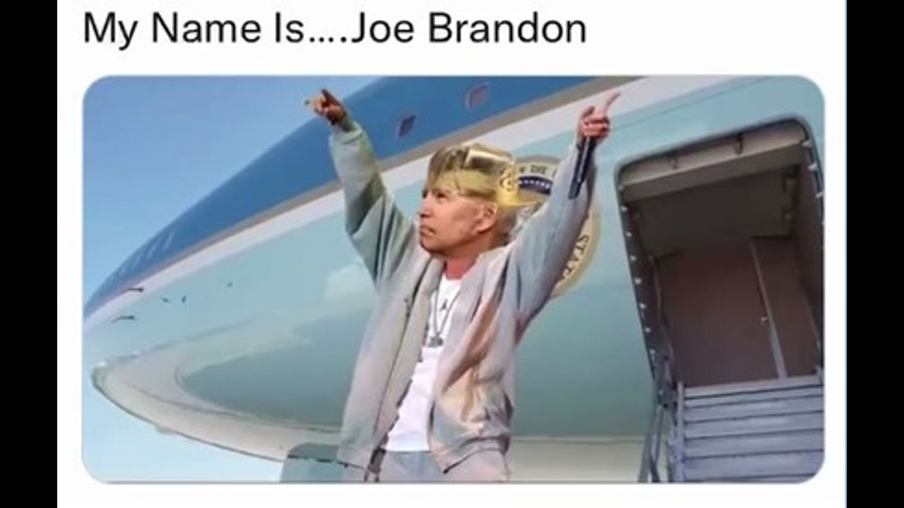 Joe Biden, aka Let's Go Brandon, goes gangsta in this meme that was posted by Makaveli Memez on Twitter. The president literally told himself to F Off during a Christmas call. Joe Biden has now adopted the new name of Joe Brandon in an attempt to re-emerge with a new positive public image. For more great tweets and memes check out https://twitter.com/Makaveli_Memez