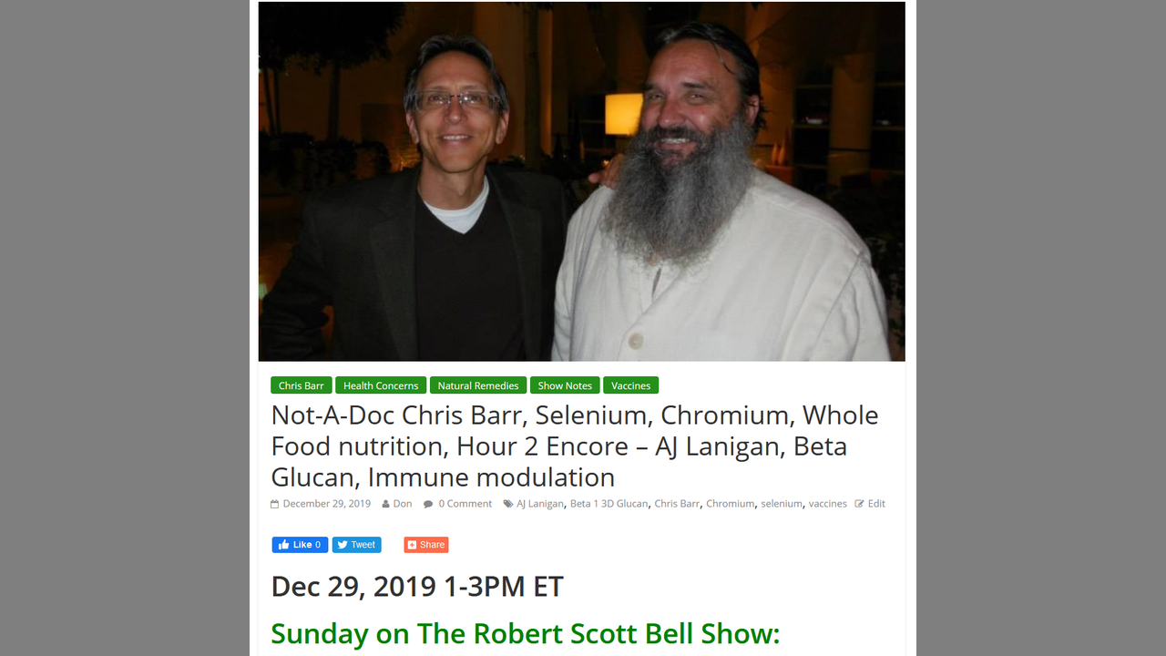 The RSB Show 12/29/19 - Not-A-Doc Chris Barr, Selenium, Chromium, Whole Food nutrition