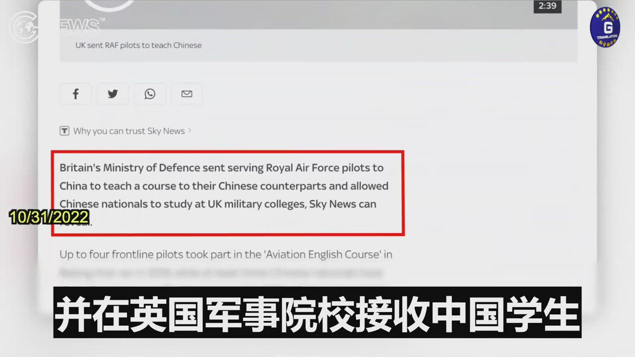 Summary:10/31/2022 British news agency Sky News: UK sent government pilots to China and accepted Chinese students at UK military colleges in the past. Britain's new prime minister Rishi Sunak was launching a ban on Chinese institutes at UK universities.