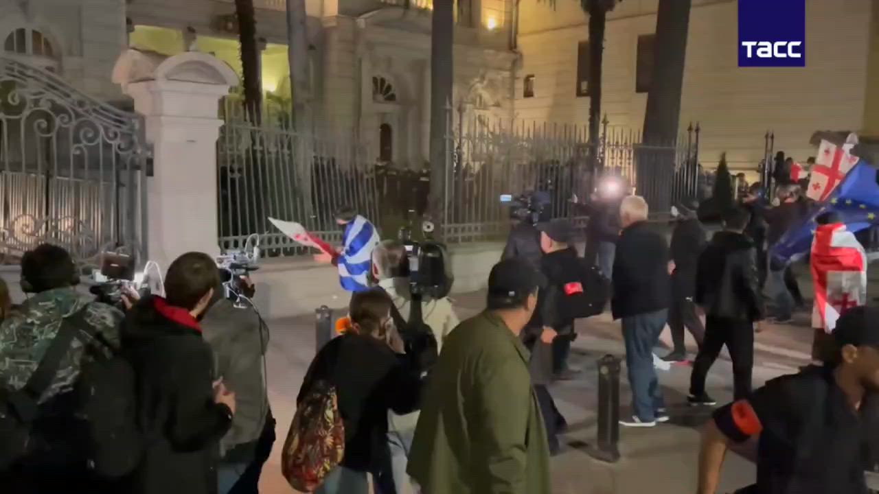 Protesters in Tbilisi are throwing stones at the presidential palace and launching fireworks at the police, reports a TASS correspondent. (Adding: Just after, Protesters broke into the courtyard of the Georgian president's residence - pepper spray was used against them.