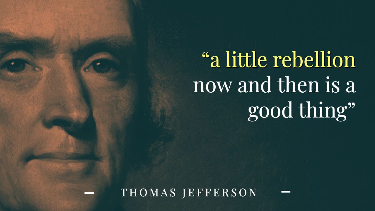Writing to James Madison about Shays’ Rebellion in early 1787, Thomas Jefferson said that “a little rebellion now and then is a good thing.” He considered it an essential check on government power - a warning that violations of the constitution and liberty might lead to serious trouble for rulers.