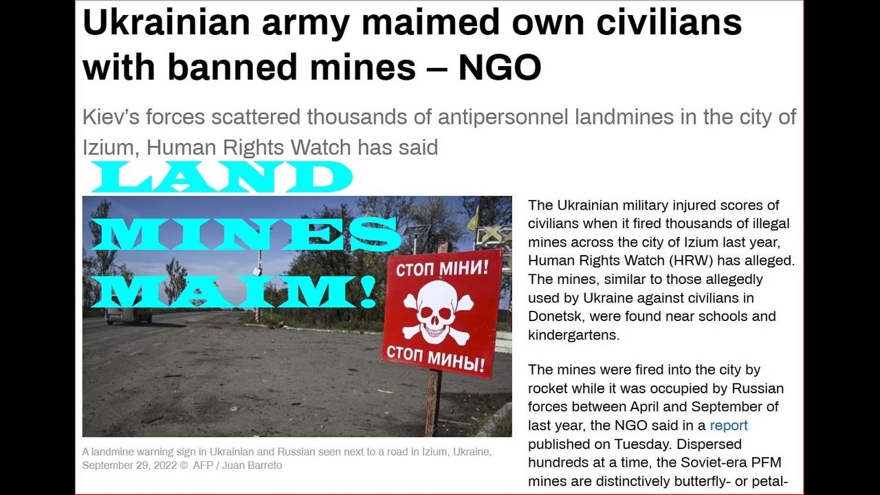 Lady Diana campaigned tirelessly against land mines now Ukraine maims civilians daily! President Trump outlines a plan to save children from demonic gender insanity! https://www.rt.com/russia/570773-ukraine-banned-landmines-civilians/ https://www.youtube.com/watch?v=DcRWRWPg4t0