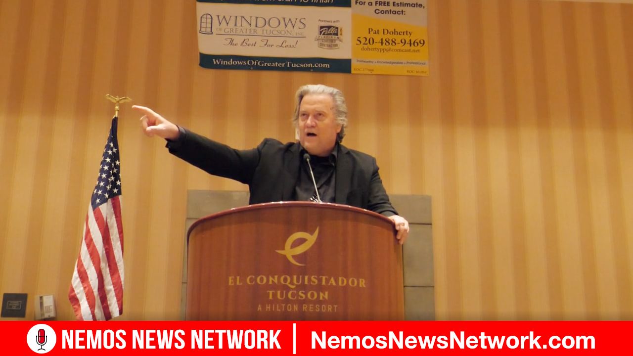 Steve Bannon hammers nails the deepstate to the wall in his keynote speech at the Pima County GOP Lincoln Day Dinner on Saturday Oct. 23rd in Pima, Arizona. "The 2020 big steal is just as providential because now there’s no more fooling ourselves, there’s no more kidding ourselves". "If you do not decertify the electors that went to Washington from this state, you are in a sacrilege against every person that has sacrificed in this country. Every patriot's grave!"