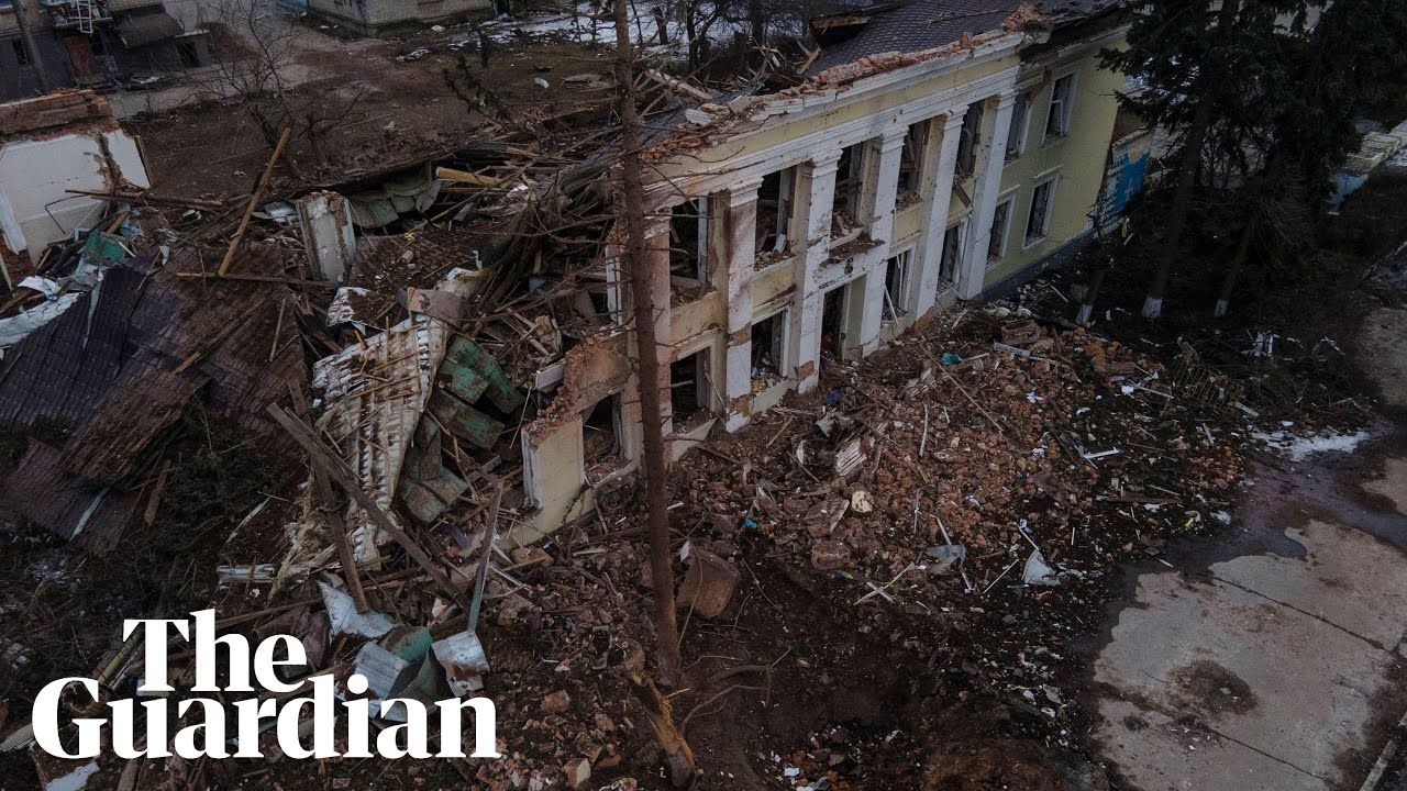 Ukraine drone footage shows scale of destruction in Okhtyrka