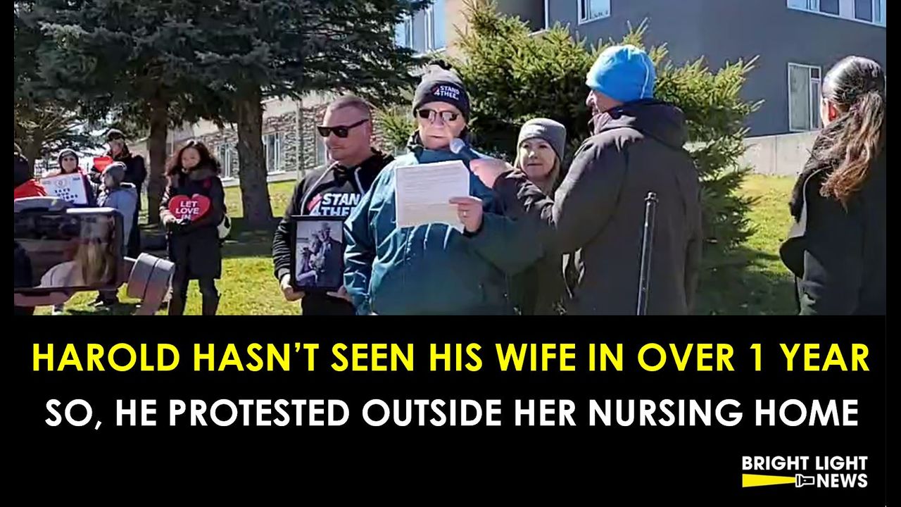 Harold Eckhardt has not been able to see his wife, Alice, in over 1 year months at her nursing home. So, he helped organize a protest outside the John Noble Home in Brantord, Ontario, on Friday, Apr. 2, as part of the Canadian Fronline Nurses (https://www.facebook.com/Canadian-Frontline-Nurses-101722648566007/about/?ref=page_internal) and Stand4THEE's Save Our Senior's campaign #SOS