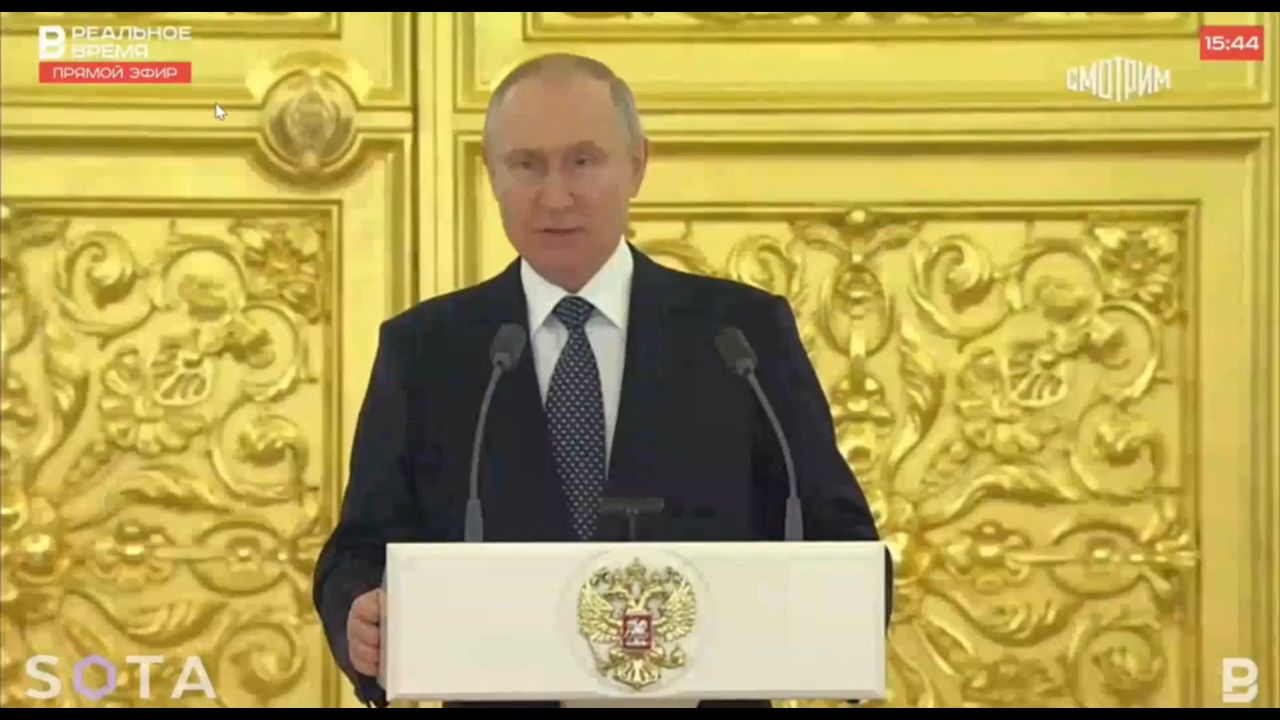 Wanted by the International Criminal Court, war criminal Putin spoke to the new ambassadors of a number of countries. After his speech, he said goodbye, but the newly arrived ambassadors from different countries contemptuously refused to clap the dictator.