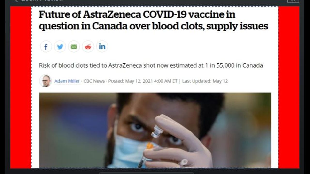 Earlier this week and 'Out of the Blue' the two big Provinces of Alberta and Ontario discontinued using the Covid 19 vaccine AstraZeneca as first shot vaccinations after studies are coming back that 1 in 55,000 people who have been administered the vaccine have acquired unique blood clots to the brain and lungs and that 20 to 40% of those that have received the blood clots have been fatal. So until further notice the vaccines have been put on hold. In the mean time the Provinces of Nova Scotia and Saskatchewan have stopped using AstraZeneca as the first shot due to supply issues. The Provinces are dealing with the question now as to what vaccine should they use as the second vaccine to those who have been given the AstraZeneca shot as their first vaccine.