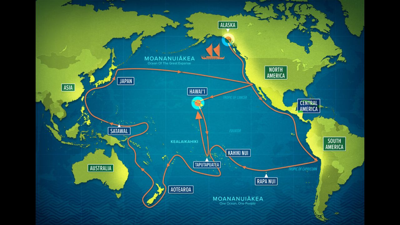 Hokulea leaving Honolulu to start the Moananuiakea Voyage.