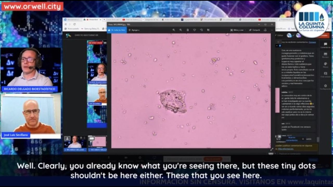New photographs and videos of electron microscopy analysis of one of the vials of vaccination against COVID-19 that La Quinta Columna has obtained.