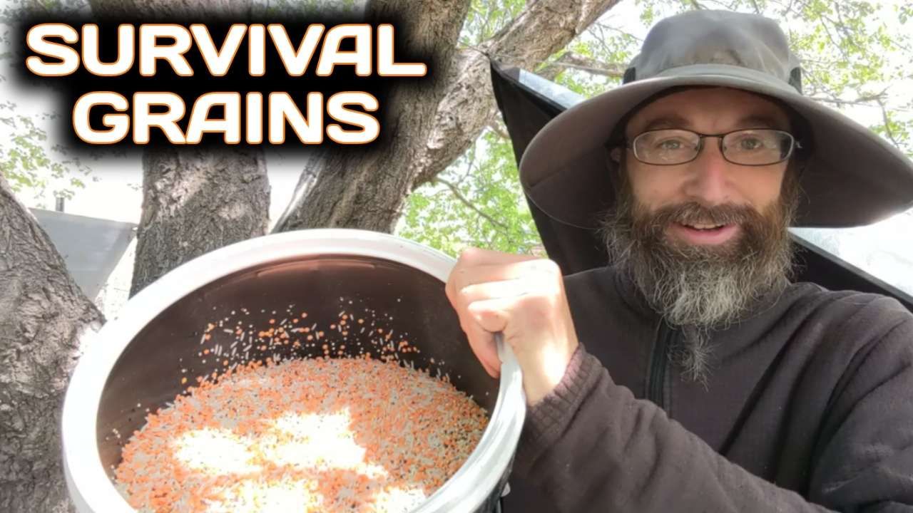 A mixture of organic white rice, quinoa amd red lentils provides a good ratio of the nutrients you need, stores space efficiently for long periods and can be used as currency in survival situations.