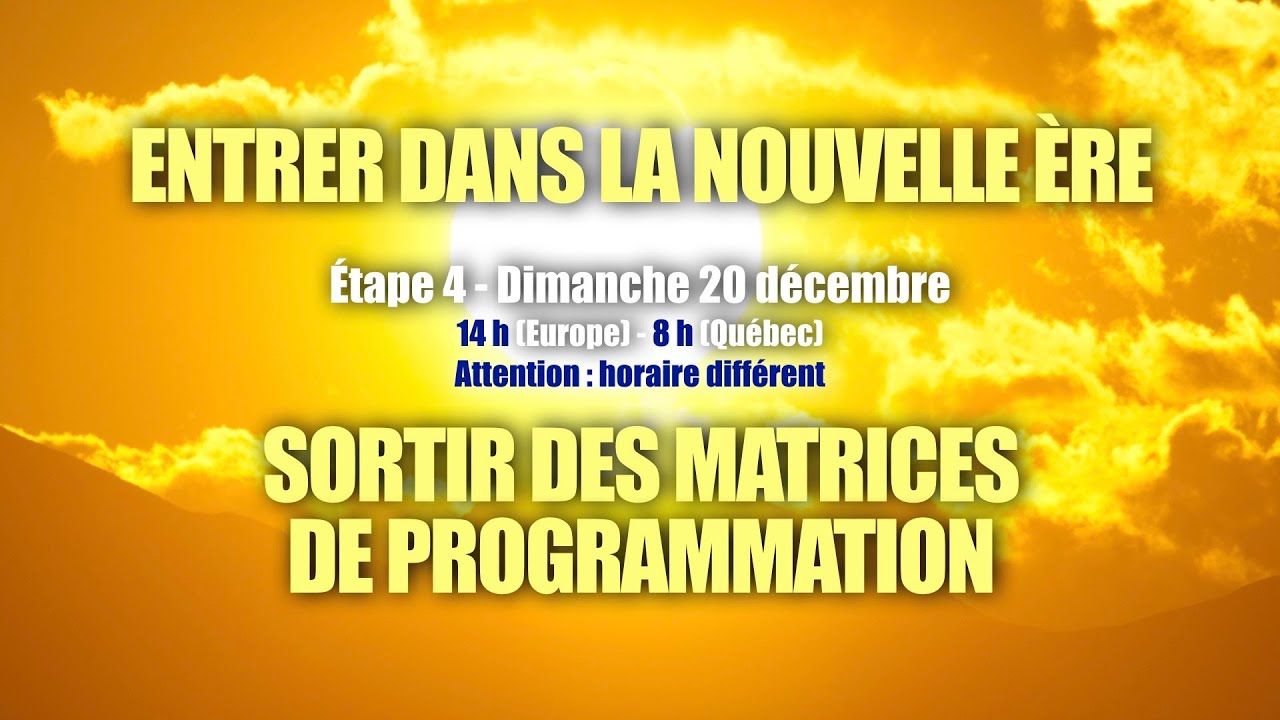 Étape 4 animée par Jean-Jacques Crèvecœur dimanche 20/12 à 14h (Europe) - 8h du matin (Québec) - EN DIRECT OU EN DIFFÉRÉ - Thème du jour : Sortir des matrices de programmation