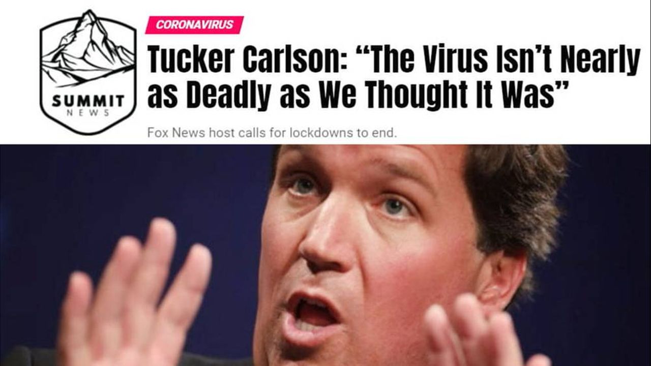 Fox News host Tucker Carlson appeared to join those demanding a move to re-open society as soon as possible when he said during his show last night “the virus isn’t nearly as deadly as we thought it was.”
