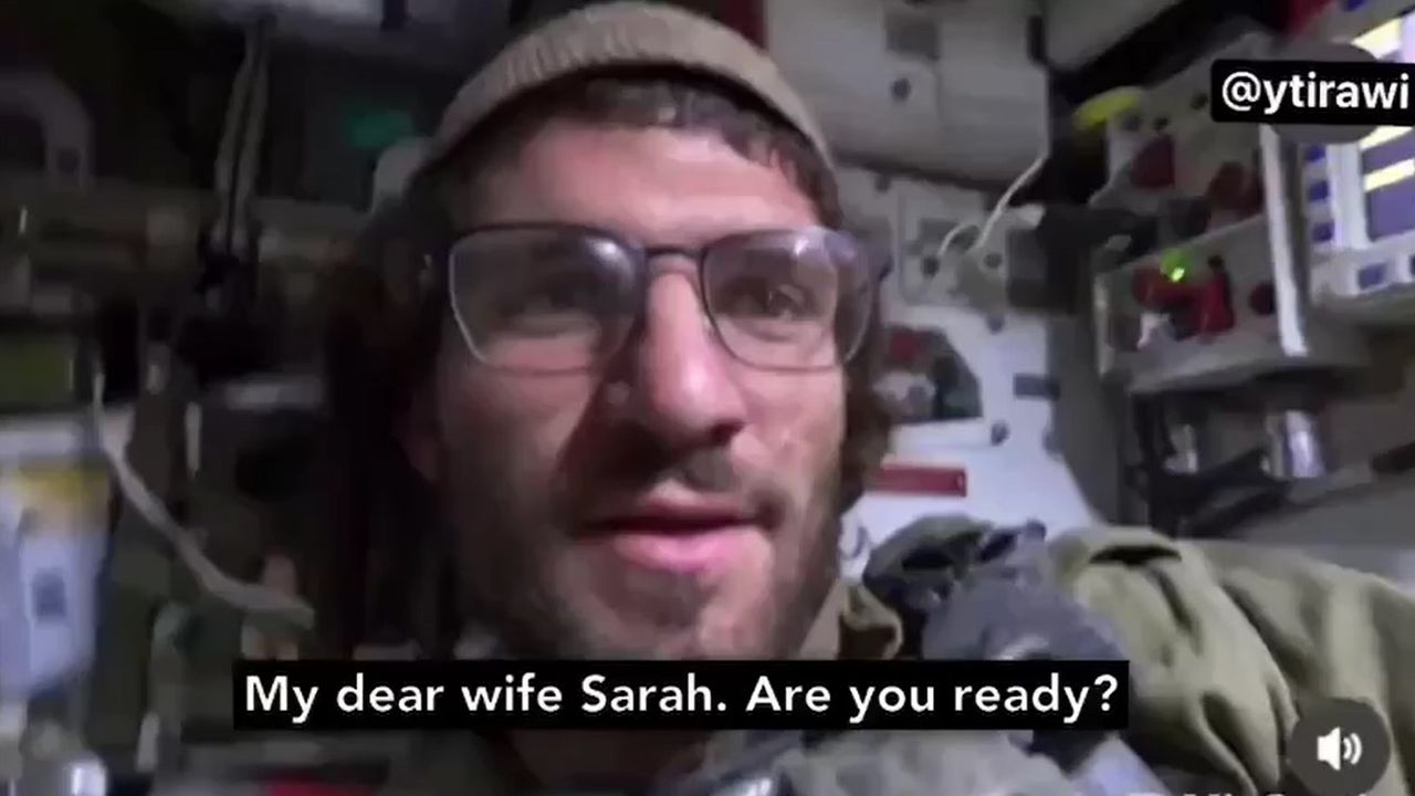 A Jewish occupation soldier, while bombing a building in Gaza, says: