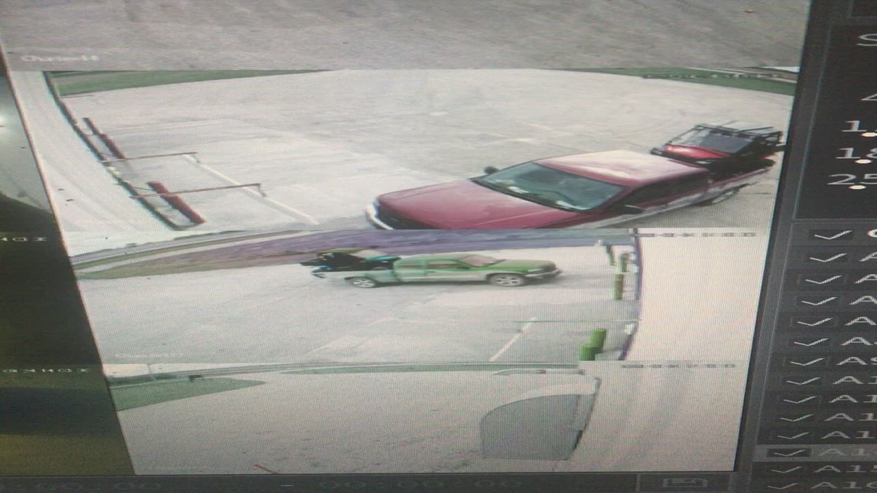 24 Sept 2022 1 a door strike multiple outdoor cameras, entering, red extended cab 1/2 ton w atv 1 of 2, destroyed door and building header .....