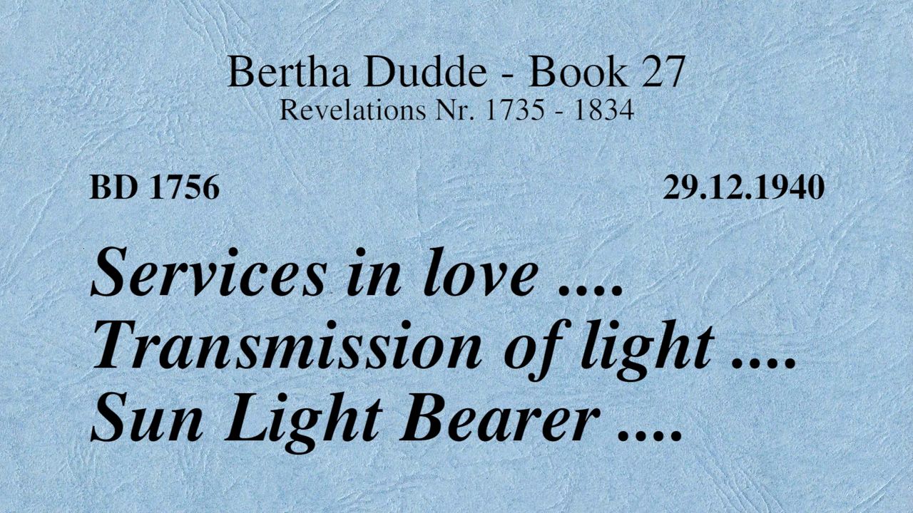 With these words the revelations of God to Bertha Dudde began on June 15, 1937, which found the conclusion on August 17, 1965 with the manifestation 9030 as a seal.