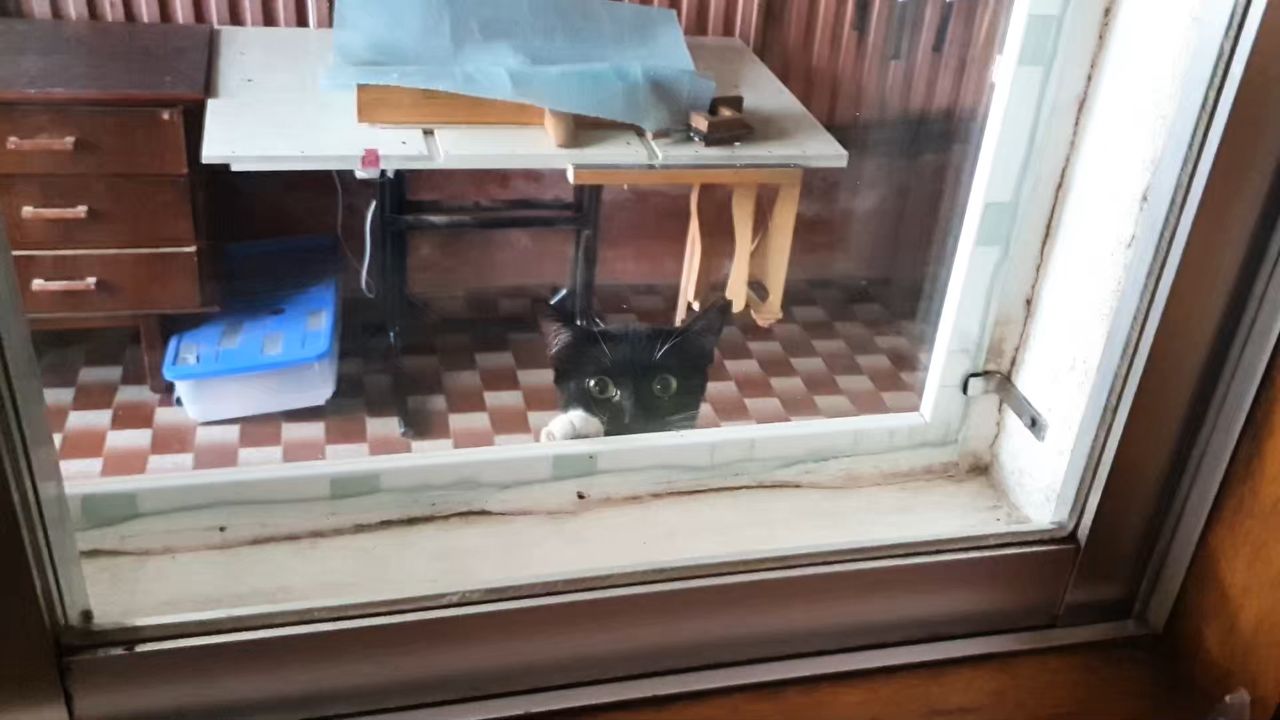 Cat Peeking at the Window!Gato a espreitar na janela!