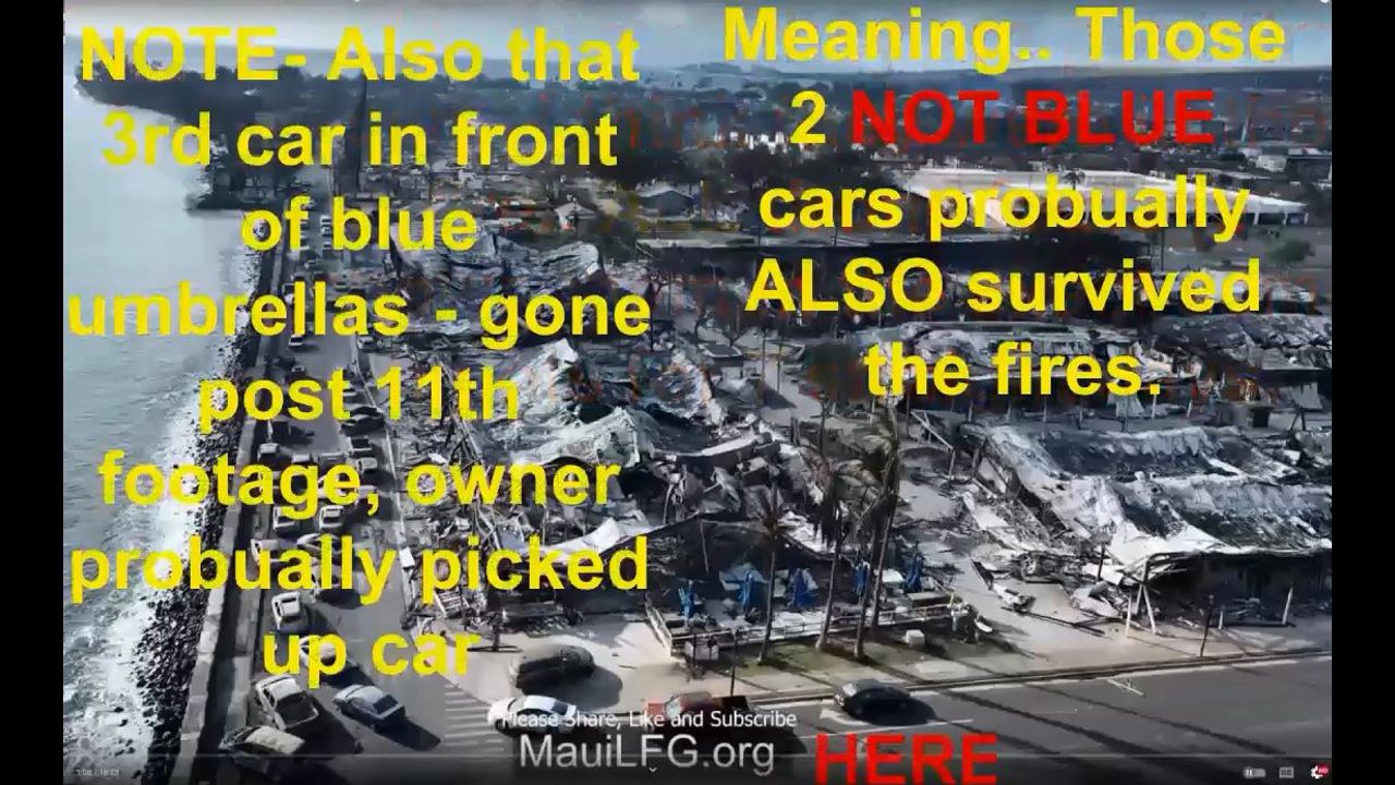 Since Lahaina has come back in the discussion in the last month. I am hoping THIS TIME people will not be fooled again with all the psyop lies that tricked them 9 months ago.. My vids are clear with more research than the goofballs spreading psyops lies research around to trick everyone. Let me be CLEAR... this was NOT a natural fire, But so many people were spreading lies about it to DISTRACT and trick everyone from finding out the truth. And also to make us truthers look crazy and dumb... it worked.. lets learn from it NOW and not do it again. Lets look at Lahaina fires again with fresh eyes guys...Drop the blue blue blue broken record lie. Drop the idea that the water was off lie.. drop the thousands of children kidnapped lie and the yellow school buses lie. Drop the Power lines caused the fire lie. Drop the watere was off LIE the water was NOT off. Drop the power poles caused the fire lie the electricity WAS off and not on. Drop the hundreds of dead bodies in the water lie, guys guys, that water was shallow deep which I show in a few vids that I made discussing that issue. Front street cars was the ONLY area showing a line up of burned cars, nowhere else. Meaning most of the town DID finally get out, thank god, even though the police blocked them from leaving and trying to escape. Ironically the fires and smoke got so bad the police that held people in that were trying to escape they themselves abandoned their posts which allowed al the blocked in cars to get out also.. Ironic huh? Cops tried to block them from leaving and they failed, cause even THEY had to leave cause it got so bad.