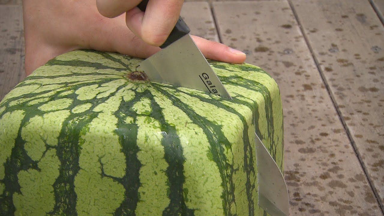 Japanese farmers in Kagawa prefecture on the island of Shikoku grow watermelons that has shape not very common for these plants. Why are they cubic? Watch the Vesti report on Russia channel from Japan.